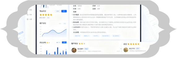 疗效评论功能用户可对问诊医生、药方效果进行客观评分,平台展示药方详细数据及真实用户评价。为用户选医生、选药方提供客观参考,避免盲目尝试